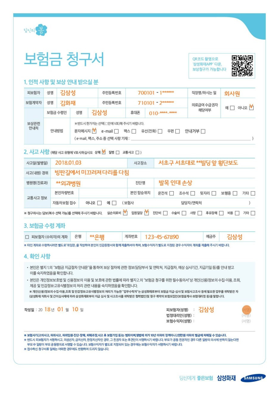 - 개인 정보와 사고 정보를 정확히 기입합니다.